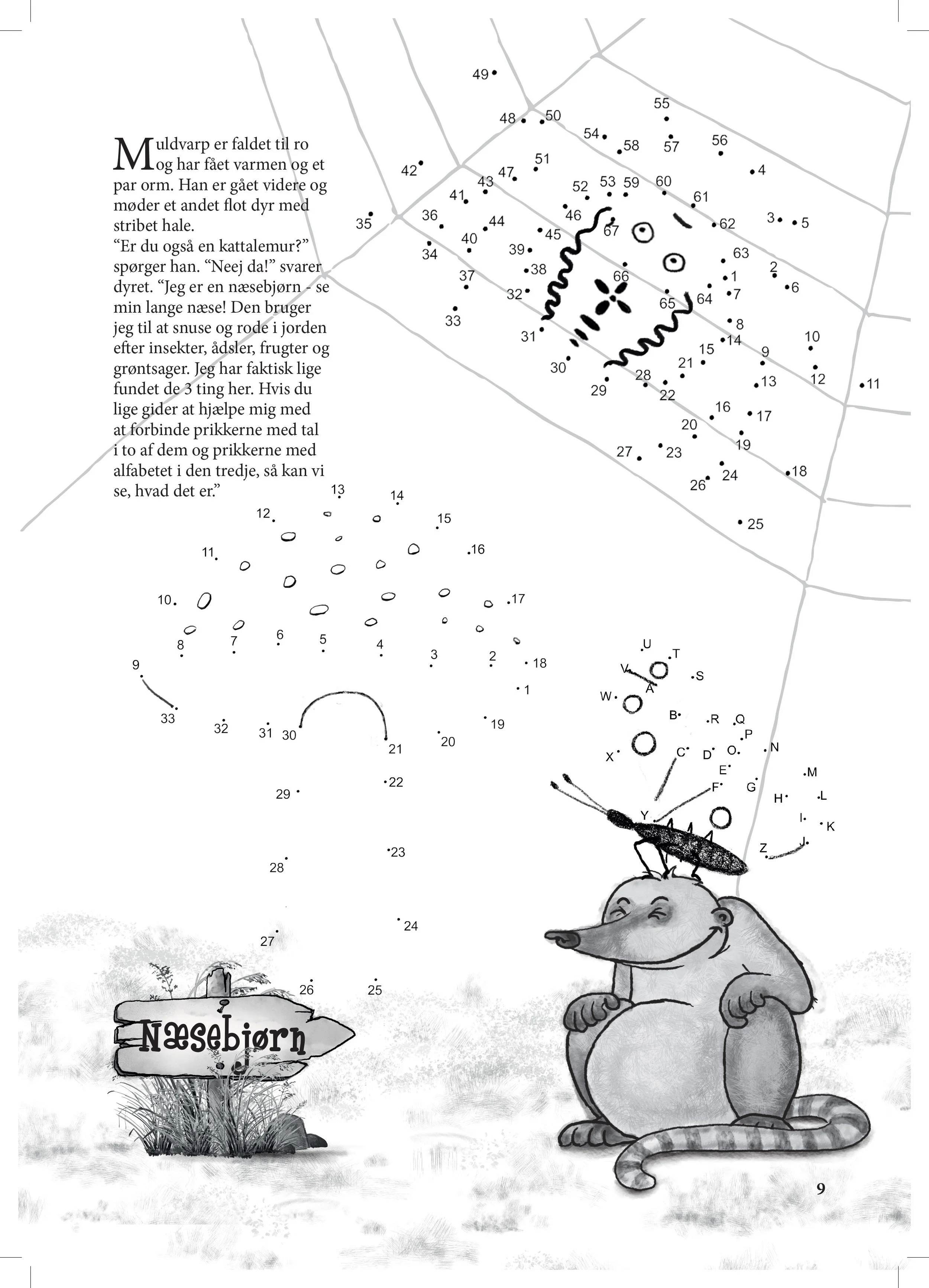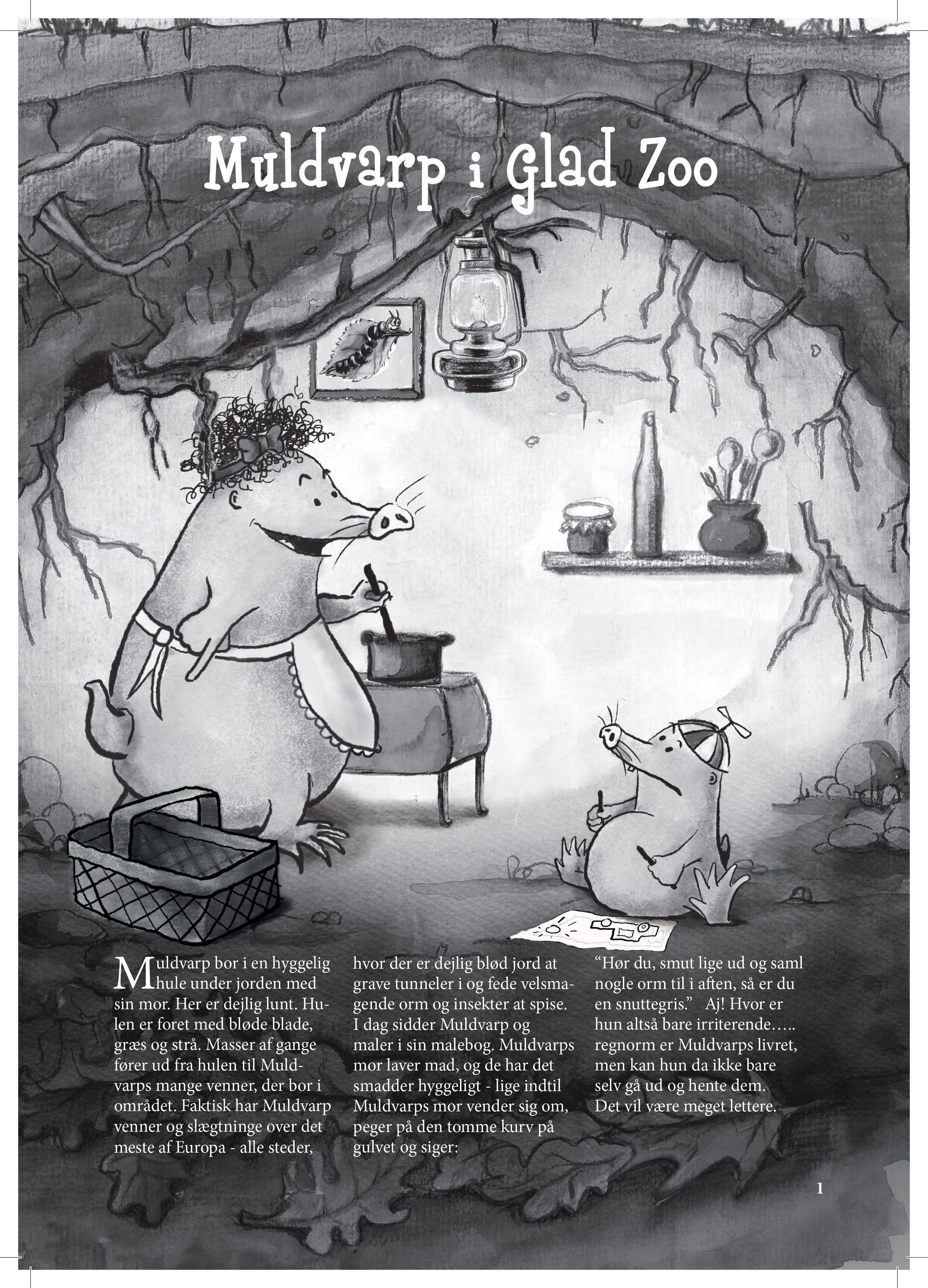 A local mole is sent out to collect worms by his mother. On his way, he stumbles upon the zoo - very impressed with this new world, he introduces the reader to a wide selection of the zoo animals. Every assignment tells you something about that particular animal and what they eat.